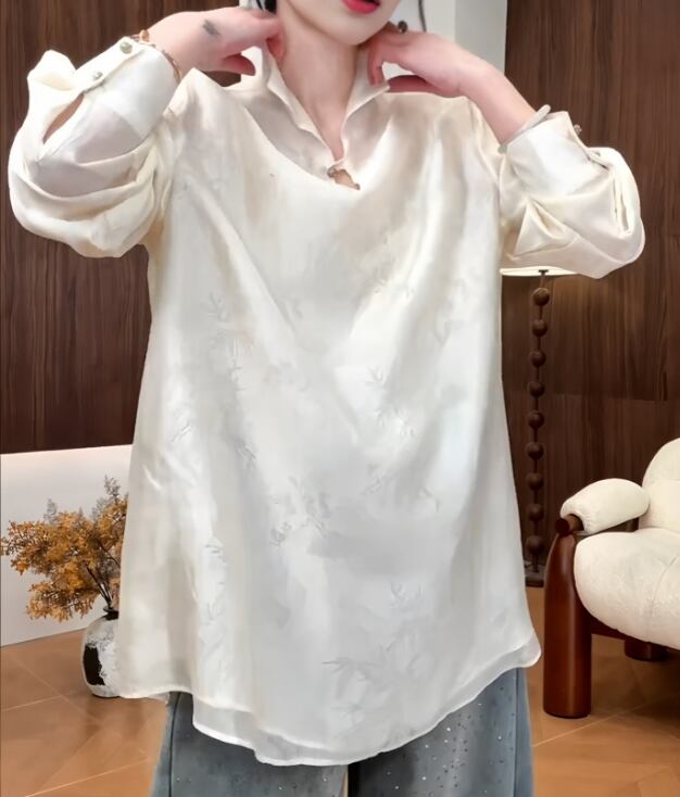 洗練されたチャイナ風デザインが魅力の長袖ブラウスです。