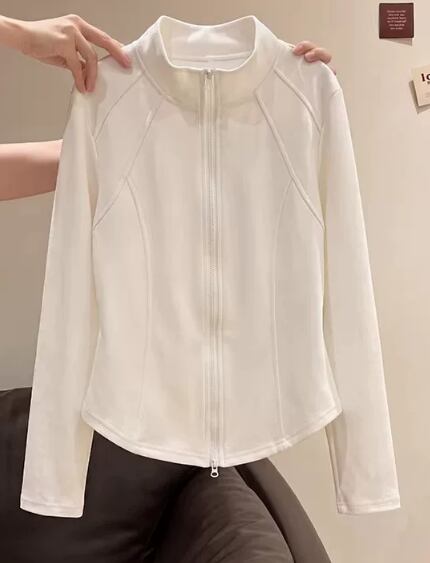 春の着こなしにぴったりのスタンドカラージップアップトップス。