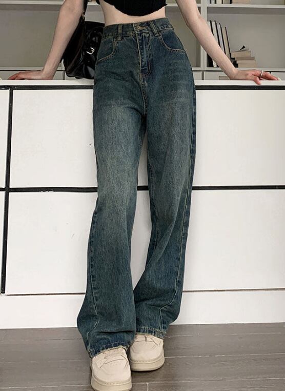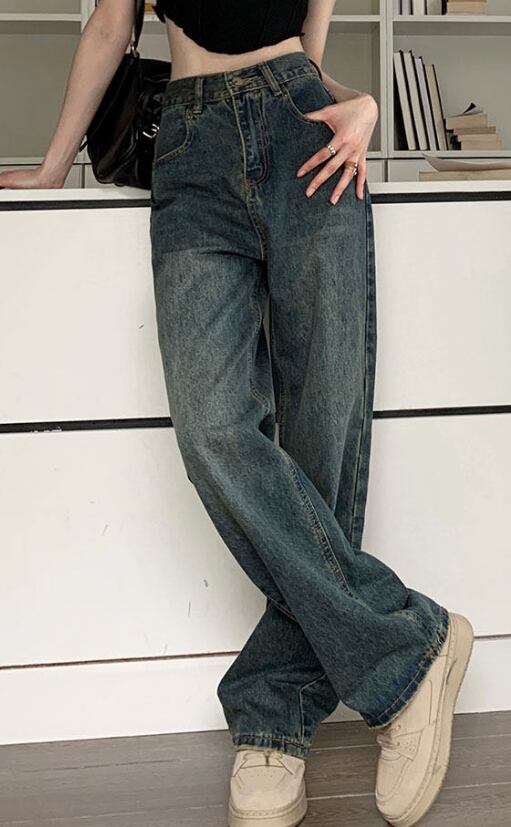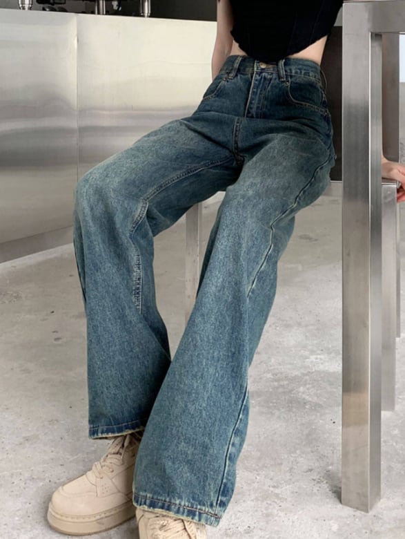 クラッシュデニム Y2Kジーンズ ストリート系パンツ ワイドデニム ハイウエストジーンズ 美脚ワイドパンツ レトロブルーデニム 体型カバーパンツ 秋冬トレンドパンツ ヒップアップ効果