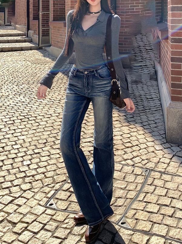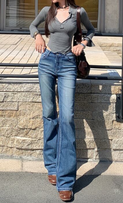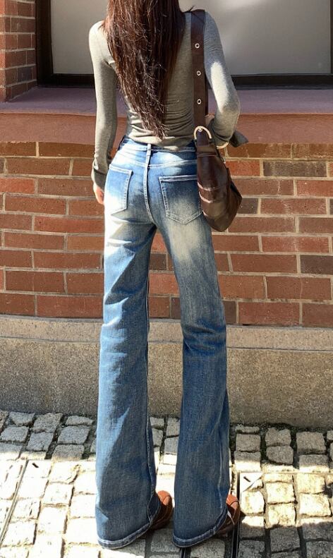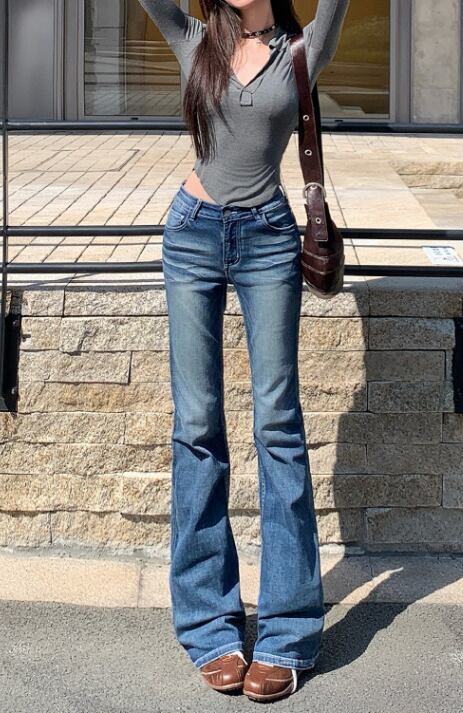 フレアデニム 春パンツ レディース 美脚ジーンズ 脚長効果 ストレッチジーンズ スタイルアップ ロングパンツ XSサイズ対応 XLサイズあり ハイウエストデニム 韓国風カジュアル デニムパンツ 春新作 体型カバー おしゃれパンツ デイリーコーデ 細見えパンツ 大人カジュアル ナチュラルコーデ お出かけコーデ