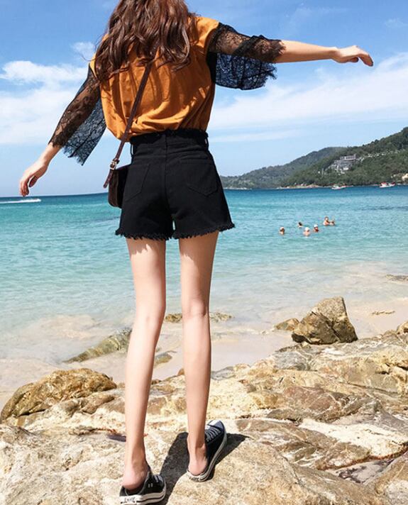 ショートパンツ レディース 夏 美脚パンツ ハイウエスト カットオフデニム 脚長パンツ 白パンツ 黒パンツ デニムショーパン ストレッチショートパンツ 海コーデ 韓国ファッション XS対応 大きいサイズ 涼しいパンツ フリンジ裾 美脚効果パンツ カジュアルパンツ デイリーショートパンツ トレンドボトムス