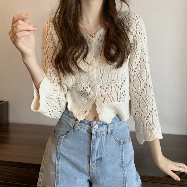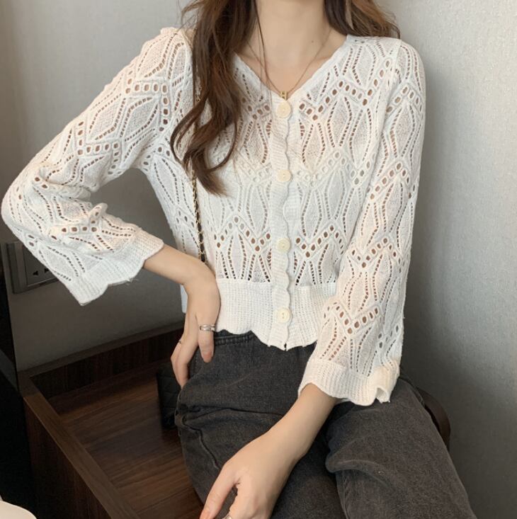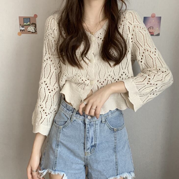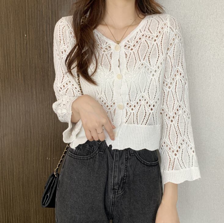 レースカーディガン レディース ショート丈トップス 透かし編み 羽織り 春秋カーディガン 長袖レーストップス 白カーディガン 上品カジュアル 薄手カーディガン ガーリースタイル 韓国ファッション おしゃれ羽織り コンパクト丈 体型カバー トレンドトップス フリーサイズ対応 フェミニンカーディガン 春コーデアイテム 軽アウター 重ね着トップス