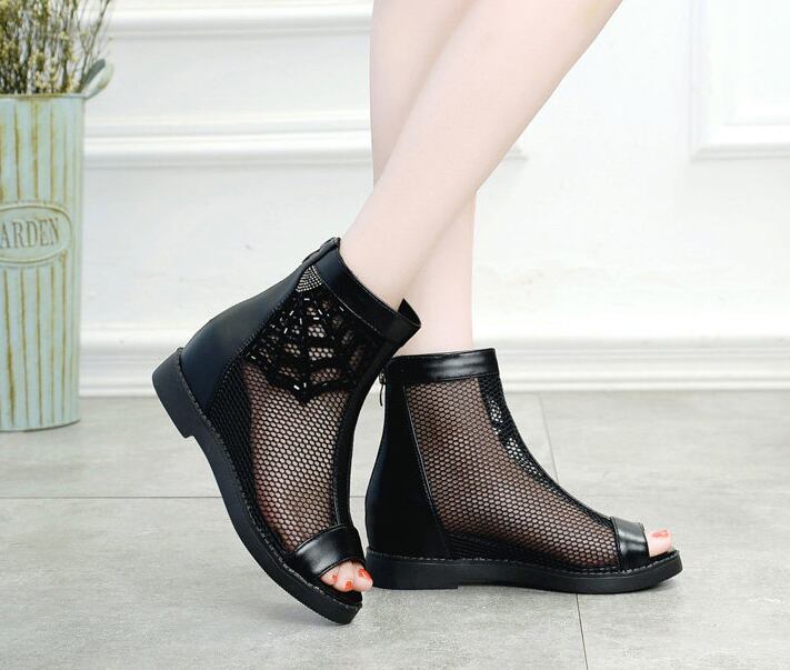 サンダル レディース 春夏 メッシュサンダル 黒 ブーツサンダル 涼しい靴 ローヒールサンダル 通気性 サマーシューズ 歩きやすいサンダル 疲れにくい 靴 低反発ソール 透け感 おしゃれサンダル フラットサンダル 軽量 レースサンダル 大人カジュアル 脱ぎ履き簡単