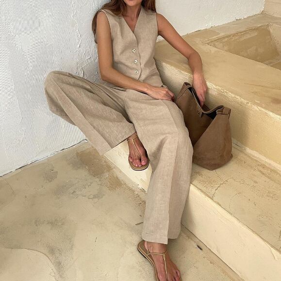 オールインワン レディース 夏 パンツドレス ノースリーブ Vネック オールインワン きれいめ セットアップ レディース ワイドパンツ レディース 通勤 オールインワン 大人 カジュアル レディース リゾート ファッション 体型カバー レディース ブラック オールインワン カーキ オールインワン 夏コーデ レディース