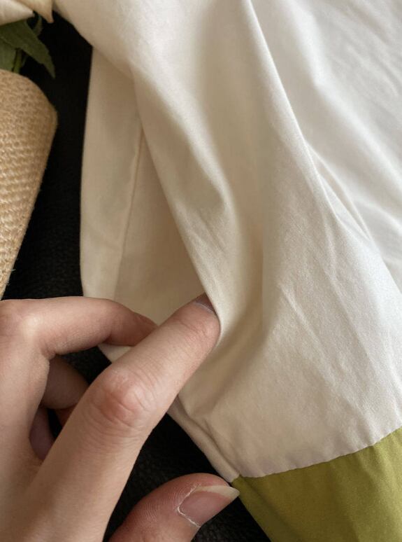 ゆったりシルエットが体のラインを拾わず体型カバー。