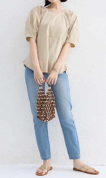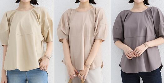 ゆったりシルエットで体のラインを拾わず自然に体型カバー。