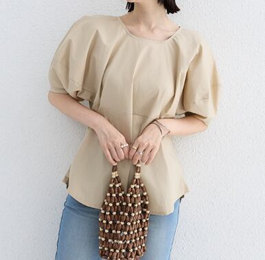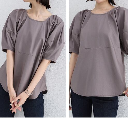 ブラウス レディース 半袖ブラウス パフスリーブブラウス 異素材ブラウス 切り替えブラウス 夏トップス レディーストップス ゆったりブラウス 体型カバートップス きれいめトップス 通勤ブラウス オフィスカジュアル 大人ブラウス シンプルブラウス ベージュブラウス グレーブラウス ブラックブラウス 春夏トップス レディースファッション デザイントップス