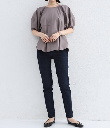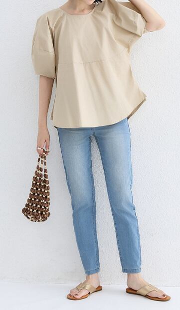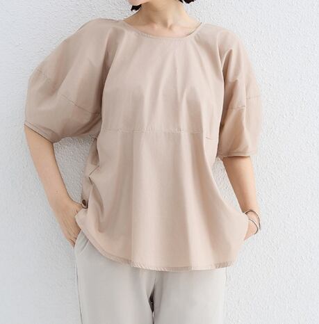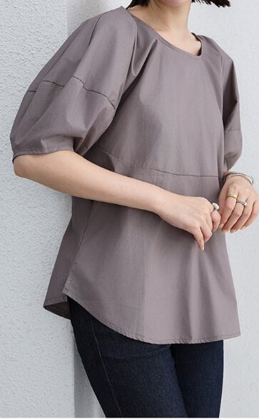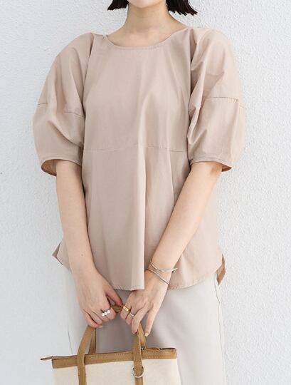 立体感のあるパフスリーブが目を惹く上品ブラウス。