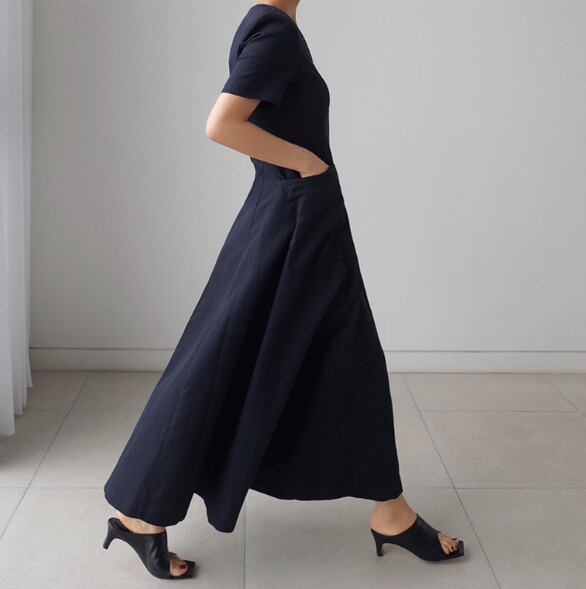 ウエスト切り替えで自然にスタイルアップが叶う一枚。