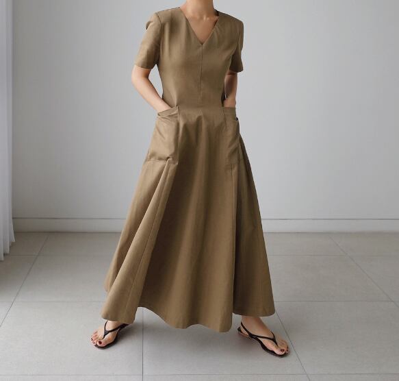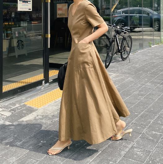 ロングワンピース レディース 半袖ワンピース Vネックワンピース フレアワンピース Aラインワンピース 夏ワンピース 無地ワンピース 体型カバーワンピース ハイウエストワンピース きれいめワンピース 大人ワンピース 通勤ワンピース デートワンピース カーキワンピース ブラックワンピース 春夏ワンピース レディースファッション 上品ワンピース マキシワンピース シンプルワンピース