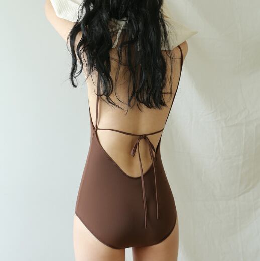 ワンピース水着 レディース 水着 レディース 体型カバー水着 バックオープン水着 セクシー水着 無地水着 ブラウン水着 大人水着 夏水着 海水着 プール水着 リゾート水着 美背中水着 シンプル水着 韓国風水着 トレンド水着 レディーススイムウェア 20代水着 30代水着 おしゃれ水着