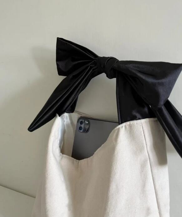大きなリボンが目を惹く、大人かわいいキャンバストート。