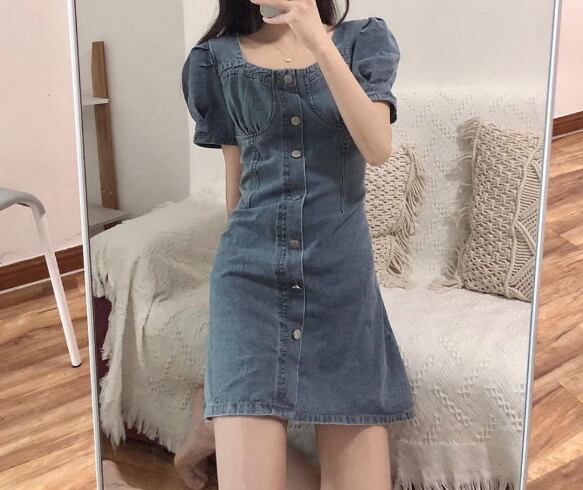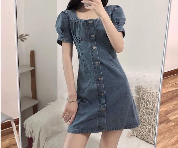 デニムワンピース レディース ミニワンピース 夏ワンピース 半袖ワンピース パフスリーブワンピース フロントボタンワンピース タイトワンピース 着痩せワンピース 韓国風ファッション 大人かわいい デートワンピース お出かけコーデ 美シルエットワンピース カジュアルワンピース 春夏ワンピース レディース夏服 トレンドワンピース ショートワンピース フェミニンワンピース 新作ワンピース