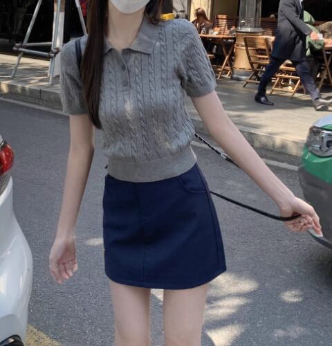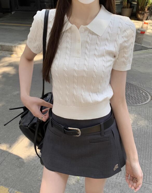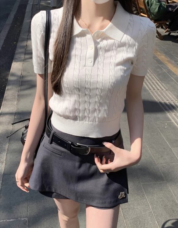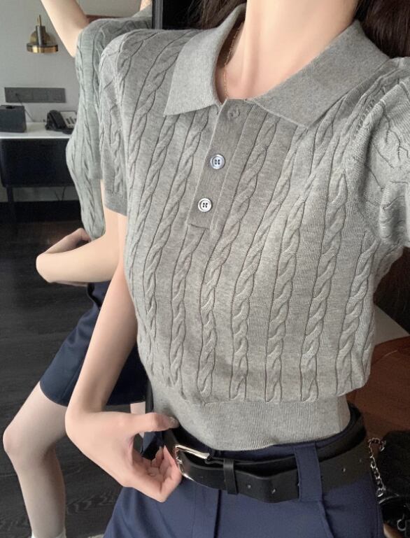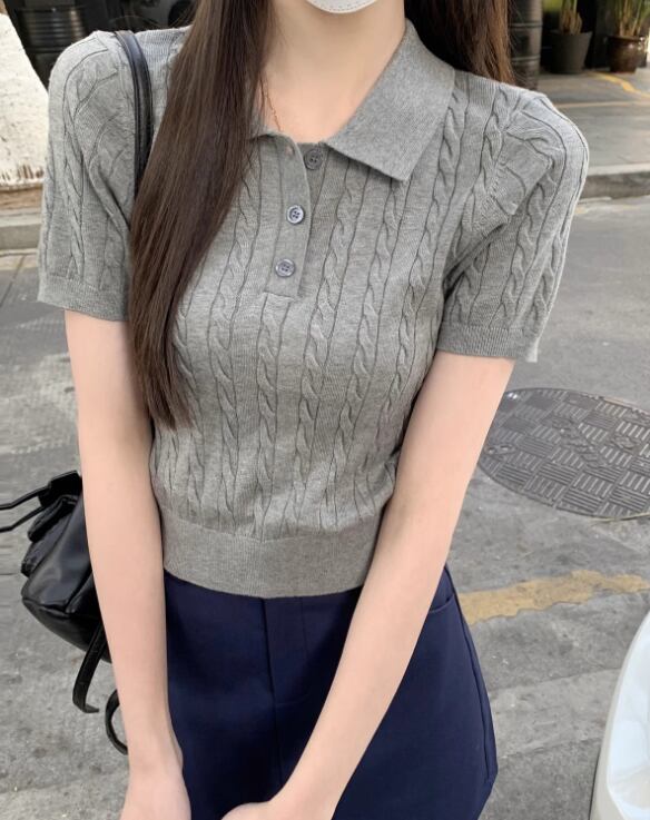 ニットポロシャツ レディース 半袖ニット サマーニット ケーブルニット ポロニット きれいめトップス オフィスカジュアル 通勤コーデ レトロ風トップス 韓国風ファッション 大人カジュアル 春夏トップス レディーストップス 上品ニット シンプルコーデ フェミニントップス デイリートップス フリーサイズ トレンドトップス 新作トップス レディース春夏服