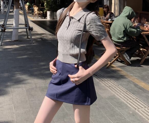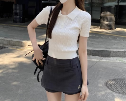 コンパクトな半袖シルエットで華奢見え効果。