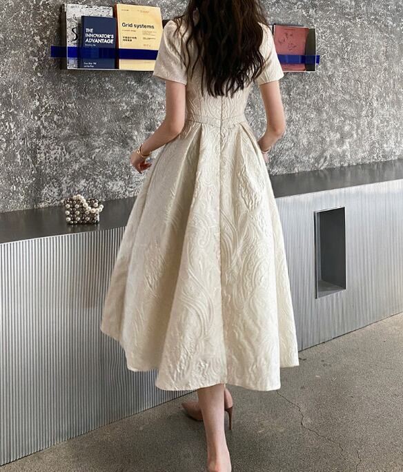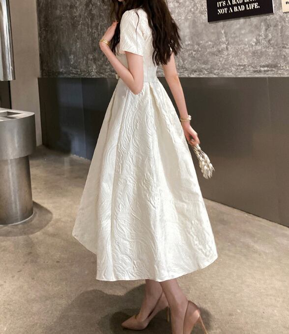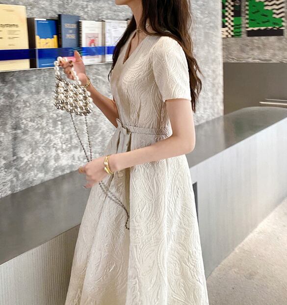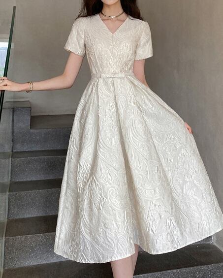 パーティーワンピース レディース フレアドレス ミモレ丈ワンピース 半袖ワンピース Vネックドレス 結婚式ドレス 二次会ドレス フォーマルワンピース エレガントワンピース 上品ワンピース シャンパンドレス お呼ばれコーデ 発表会ドレス 大人フェミニン レディースフォーマル 春夏ドレス 美シルエットワンピース ハイウエストワンピース きれいめワンピース 新作ドレス