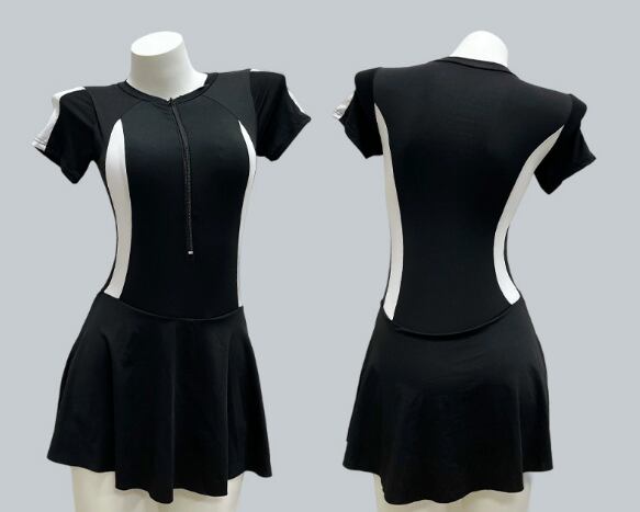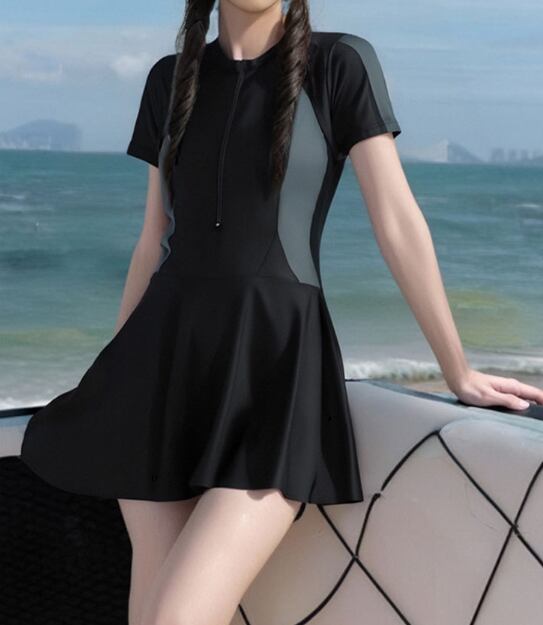 ワンピース 水着 半袖 スポーツデザイン 体型カバー スカート一体型 夏新作 海 プール フィットネス 温泉 黒 大きいサイズ