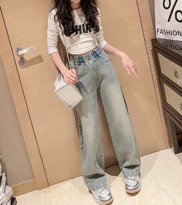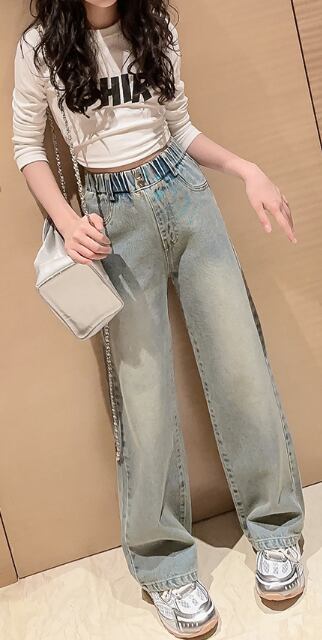 子供デニムパンツ 女の子ワイドパンツ キッズロングパンツ 春秋ボトムス ジュニアカジュアルパンツ 通学コーデ 子供服トレンド ゆったりデニム 韓国風キッズ ストレートパンツ 女児ボトムス おしゃれ子供服 小学生パンツ ガールズデニム ワイドレッグパンツ ダンス衣装キッズ 姉妹コーデ デイリーコーデ キッズファッション ロング丈パンツ