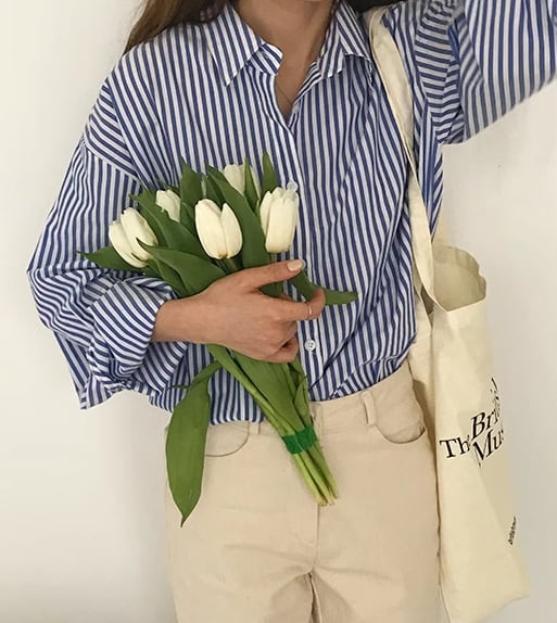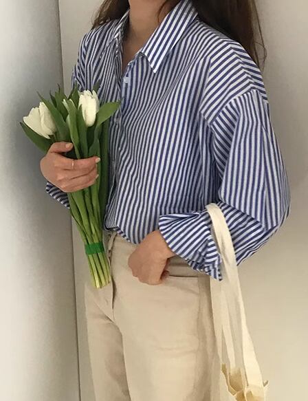 大人可愛い雰囲気漂うドロップショルダー襟付きの長袖シャツ