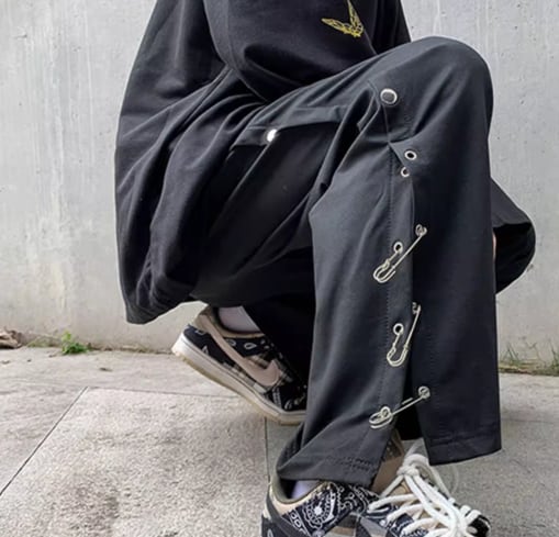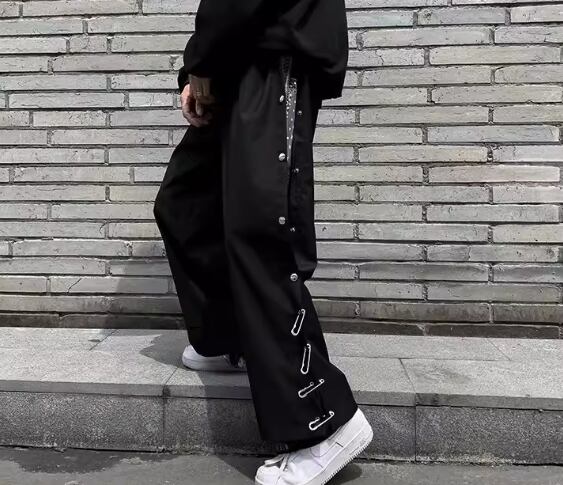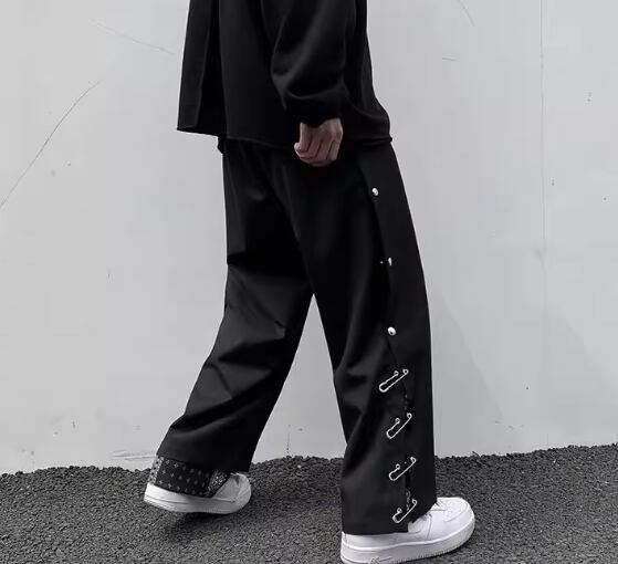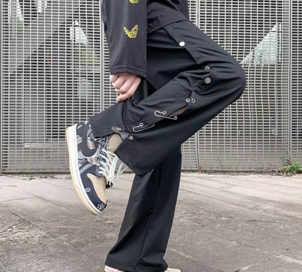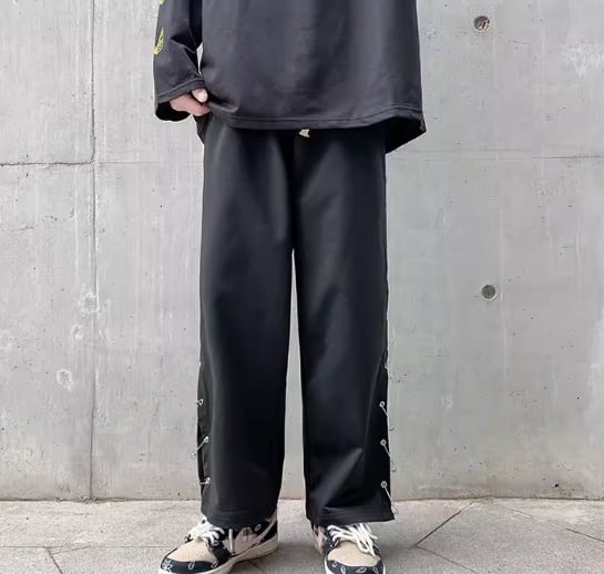 チャイナ風のデザインがクールでかっこいいストレートシルエットのワイドパンツ。