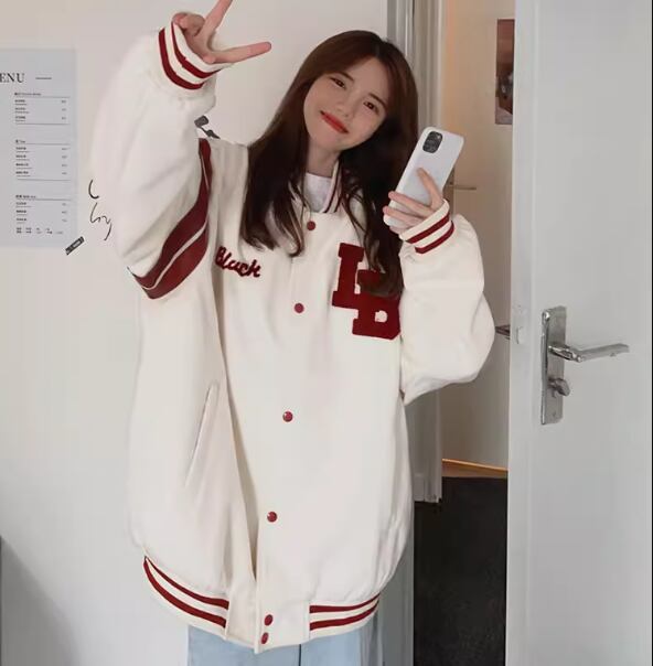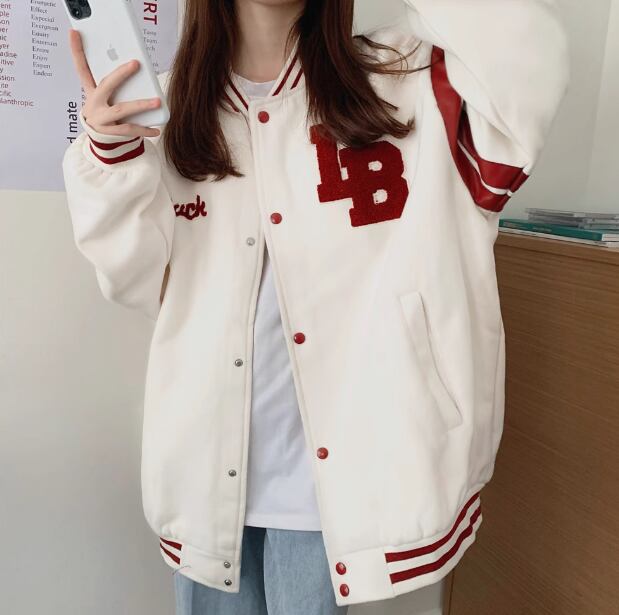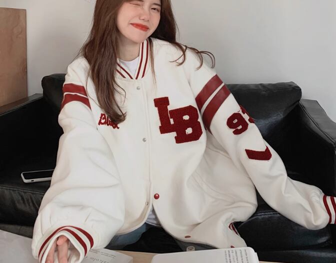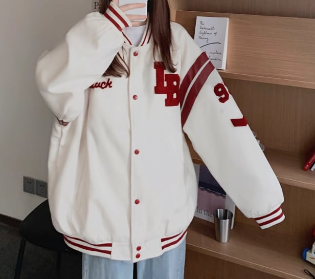 ユニフォーム風 レディース ジャケット アウター 上着 ミドル丈 長袖 ベースボールカラー 前開き ボタン 薄手 コットン カジュアル おしゃれ かっこいい レトロ ラフ メンズライク ボーイッシュ スポーティー ルーズ クール 存在感 ワイルド ハンサム シック 文字 テキスト 英語 数字 春 秋 10代 20代 学生 デート お出かけ アウトドア キャンプ イベント 休日 ショッピング コンサート ライブ フェス トレンド 流行 M L XL ゆったり ゆる オーバーサイズ ホワイト ブラック