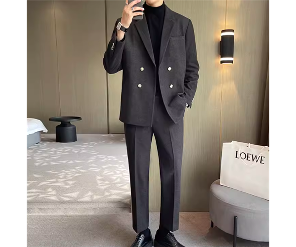 シックなカラーとスマートなデザインが魅力的なスーツの上下セット。