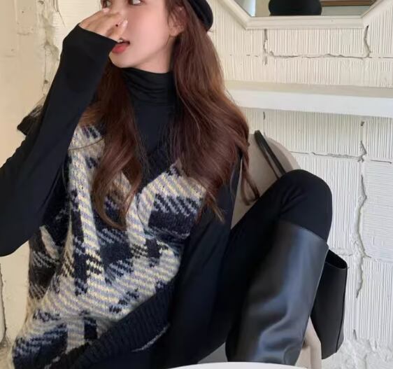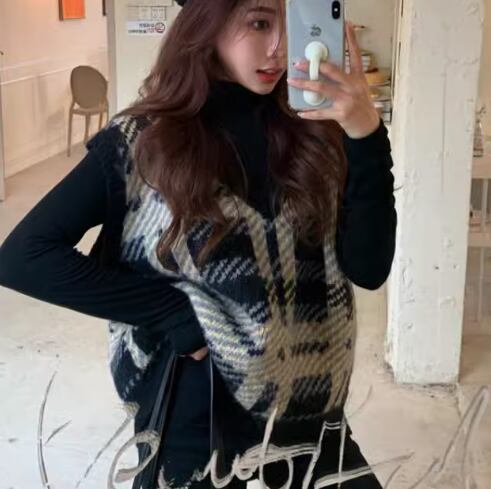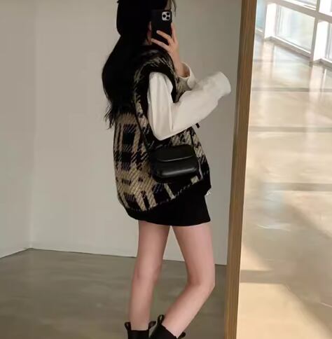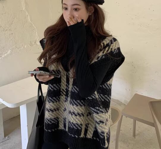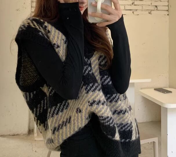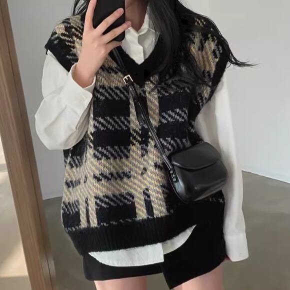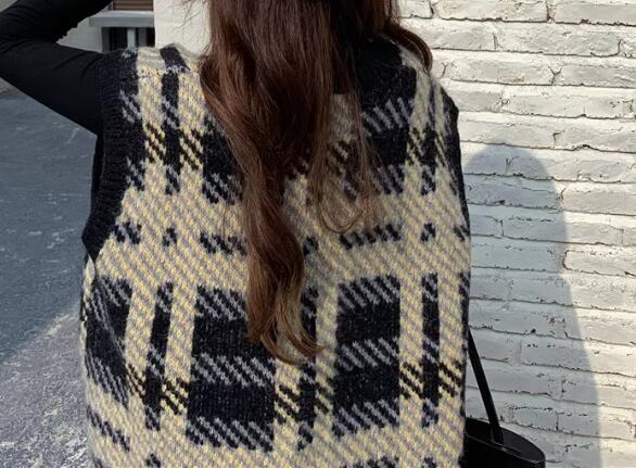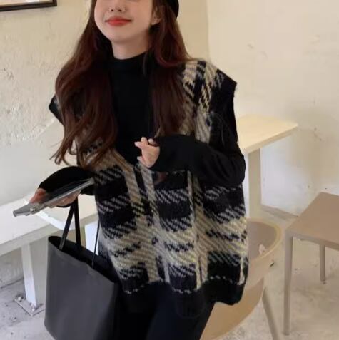 レディース トップス ニット プルオーバー ベスト ミドル丈 袖なし ノースリーブ Vネック 大人可愛い きれいめ シンプル カジュアル 上品 おしゃれ レトロ ボーイッシュ ルーズ エレガント 存在感 クラシカル 知的 ハンサム シック 高級感 チェック 春 秋 冬 デート お出かけ 旅行 女子会 休日 ショッピング コンサート ライブ お花見 カフェ 重ね着 普段使い 着回し レイヤード S M L ゆったり ゆる 大きめ ブラック ベージュ