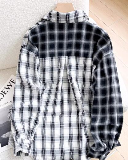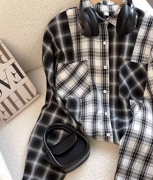 レディース トップス シャツ ブラウス ミドル丈 長袖 襟付き 前開き ボタン かわいい 大人可愛い カジュアル 上品 おしゃれ かっこいい レトロ メンズライク ボーイッシュ ルーズ 個性的 クール モダン 存在感 知的 清潔感 爽やか ハンサム シック 高級感 スタイリッシュ チェック 春 秋 デート お出かけ イベント 旅行 公園 休日 ショッピング コンサート ライブ お花見 カフェ モノトーン 韓国 普段使い 着回し S M L XL ゆったり ゆる ブラック