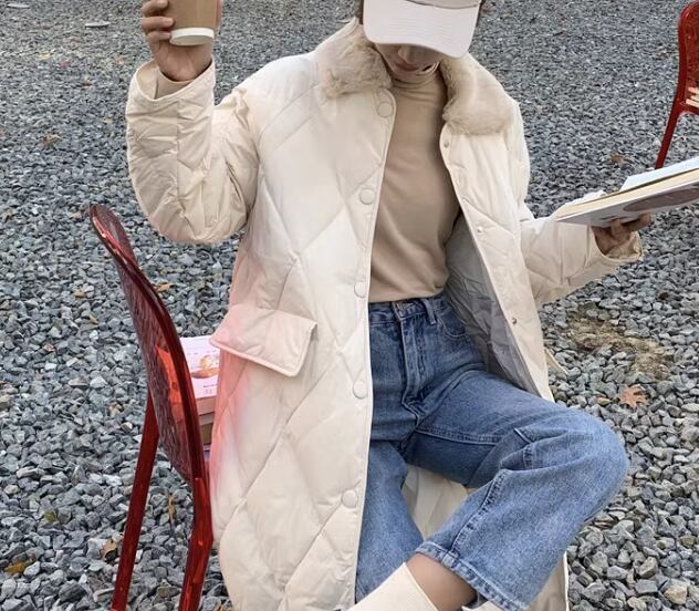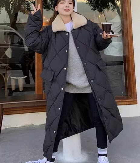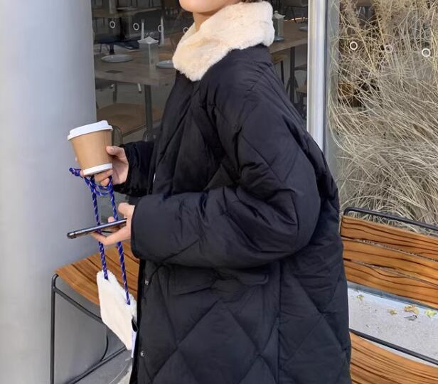 レディース コート アウター 上着 ロングコート キルティングコート ロング 長袖 襟付き ポケット 前開き ファー 厚手 コットン 大人可愛い シンプル カジュアル おしゃれ ボーイッシュ ルーズ クール エレガント 存在感 ハンサム シック 高級感 冬 デート お出かけ アウトドア キャンプ イベント 旅行 公園 休日 ショッピング 韓国 暖かい 防寒 普段使い 着回し L XL 大きいサイズ ゆったり ゆる ブラック アプリコット