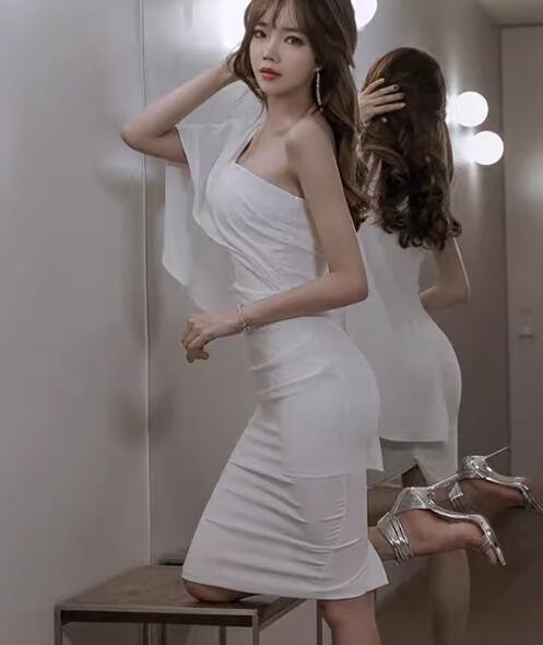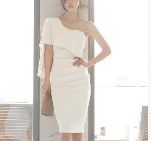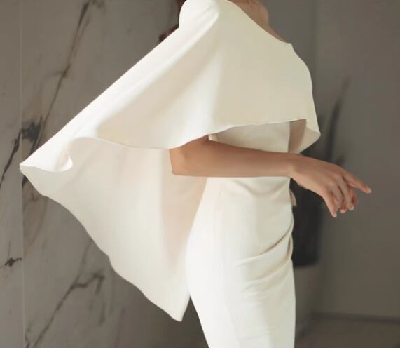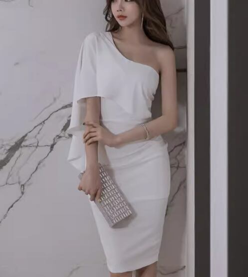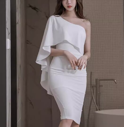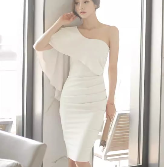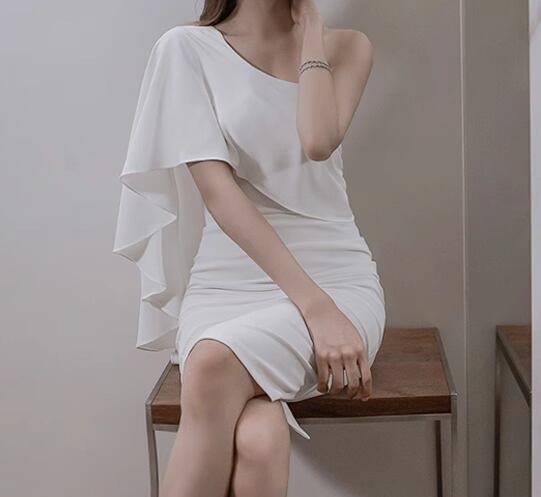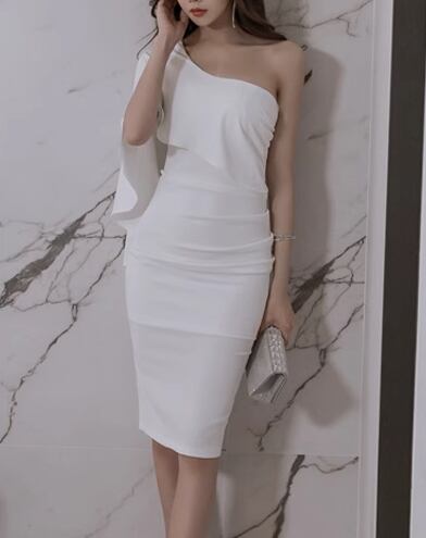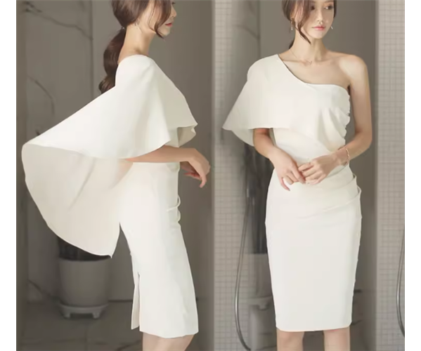 ケープ風 レディース ドレス 膝丈 ミドル丈 袖なし ノースリーブ ワンショルダー タイト スリム 細身 ファスナー 異国風 大人可愛い きれいめ シンプル 上品 おしゃれ かっこいい こなれ感 エレガント ラグジュアリー セレブリティ 知的 清潔感 爽やか セクシー シック 高級感 スタイリッシュ 無地 夏 デート お出かけ パーティー イベント レストラン 休日 ホテル 韓国 モテ S M L 小さめ ホワイト 大人デザイン