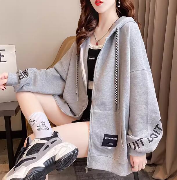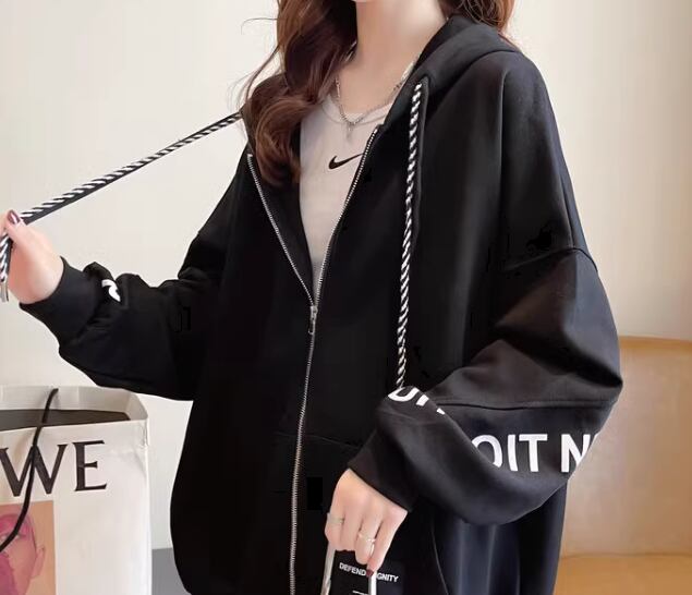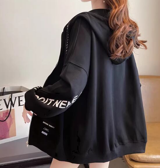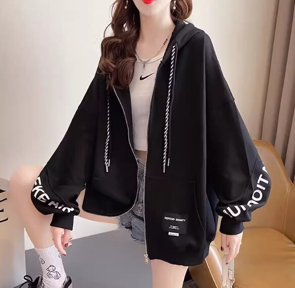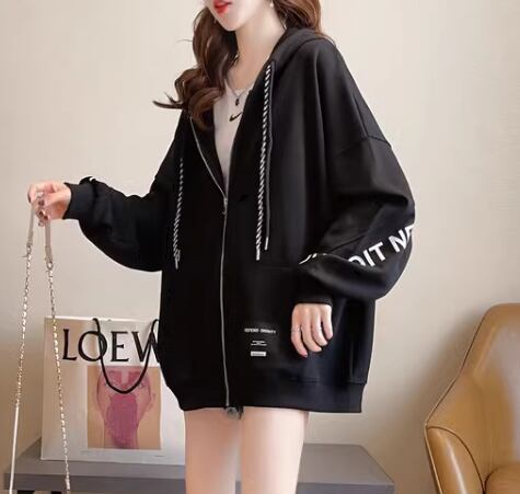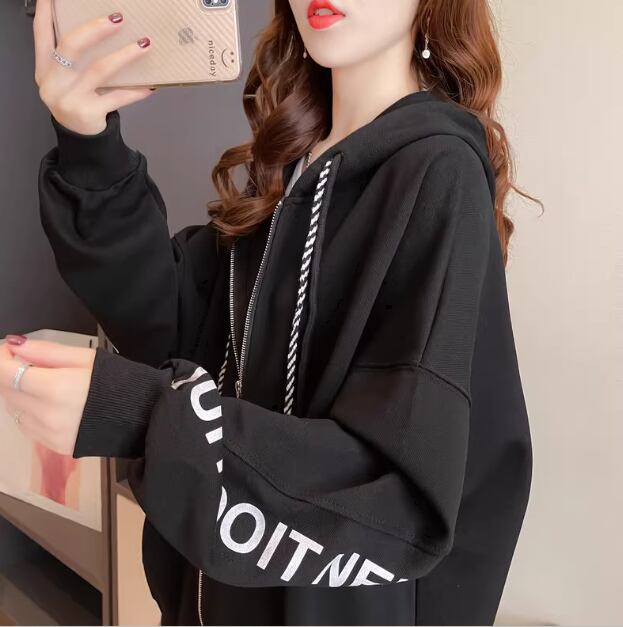 レディース パーカー ミドル丈 長袖 ファスナー ポケット 前開き フード 薄手 コットン カジュアル おしゃれ かっこいい ラフ メンズライク ボーイッシュ スポーティー ルーズ クール 存在感 ラグジュアリー ハンサム シック スタイリッシュ プリント 文字 テキスト 英語 春 秋 10代 20代 学生 デート お出かけ イベント 旅行 休日 ショッピング コンサート ライブ 韓国 普段使い 着回し トレンド 流行 M L XL ゆったり ゆる 大きめ オーバーサイズ ブラック グレー