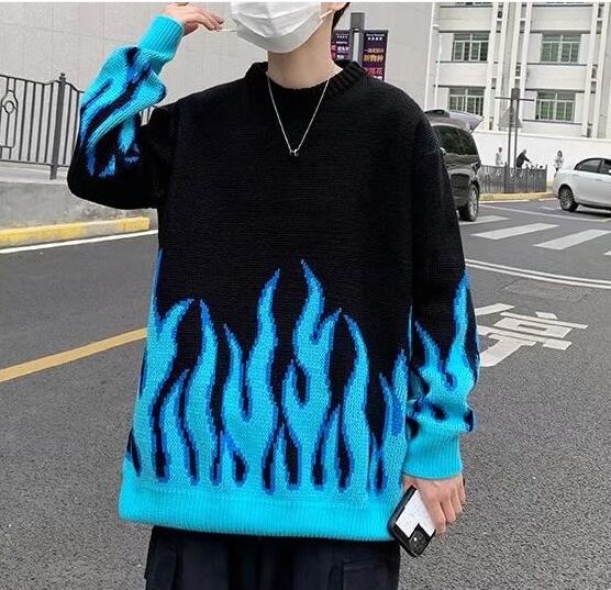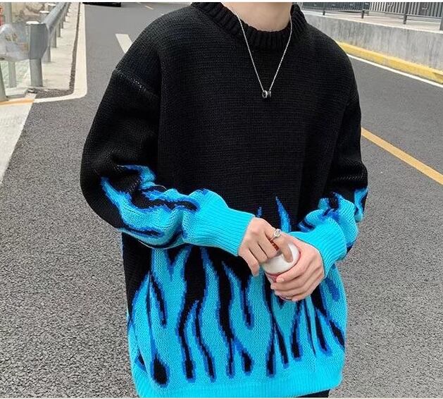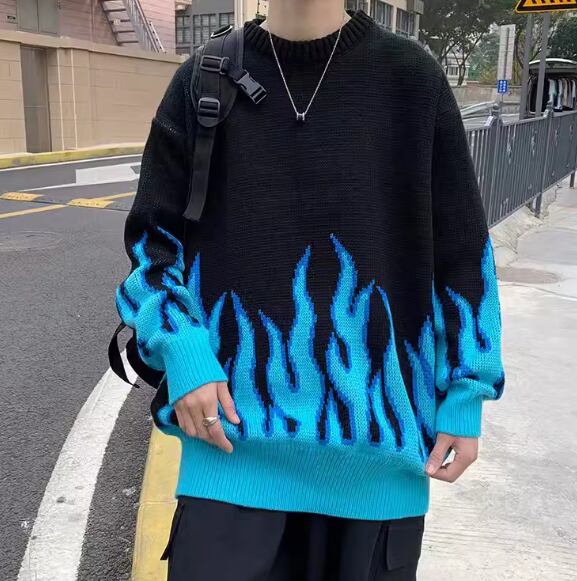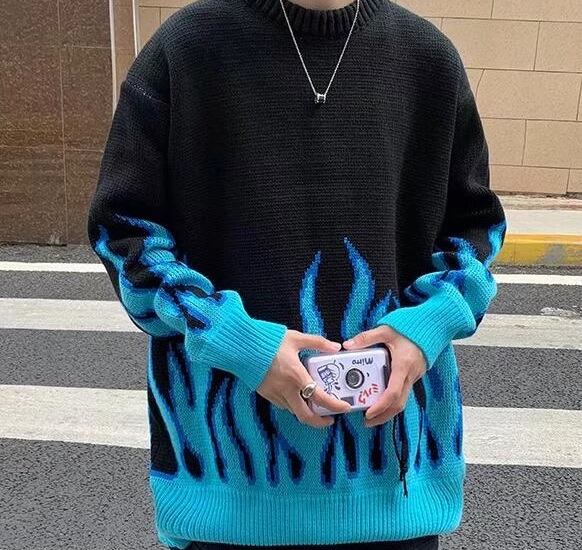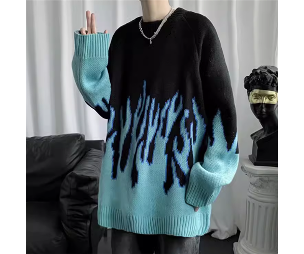 メンズ 男性用 レディース トップス ニット セーター プルオーバー ミドル丈 長袖 ラウンドネック カジュアル おしゃれ かっこいい ラフ メンズライク ボーイッシュ ルーズ 個性的 クール 存在感 ラグジュアリー ワイルド 派手 ロック ハンサム 芸術的 アーティスティック スタイリッシュ プリント 春 秋 男女兼用 ユニセックス カップル 10代 20代 学生 デート お出かけ 韓国 普段使い 着回し トレンド 流行 M L XL ゆったり ゆる 大きめ オーバーサイズ ブルー