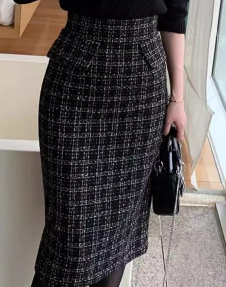 レディース スカート ウール タイトスカート ペンシルスカート 膝丈 ミモレ ミドル丈 スリット ファスナー ハイウエスト 大人可愛い きれいめ シンプル 上品 おしゃれ こなれ感 エレガント ナチュラル 知的 セクシー シック 高級感 オフィスカジュアル チェック 秋 OL デート お出かけ 旅行 レストラン 女子会 休日 ショッピング カフェ 脚長 普段使い 着回し モテ 清楚 トレンド 流行 S M L XL ブラック 大人デザイン