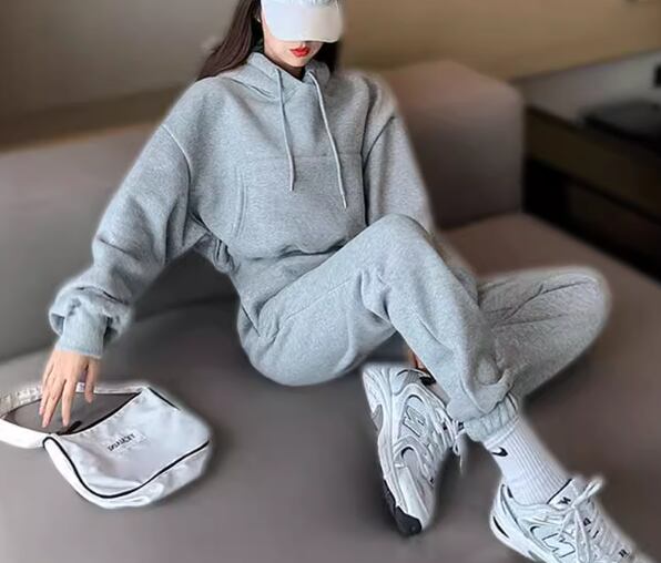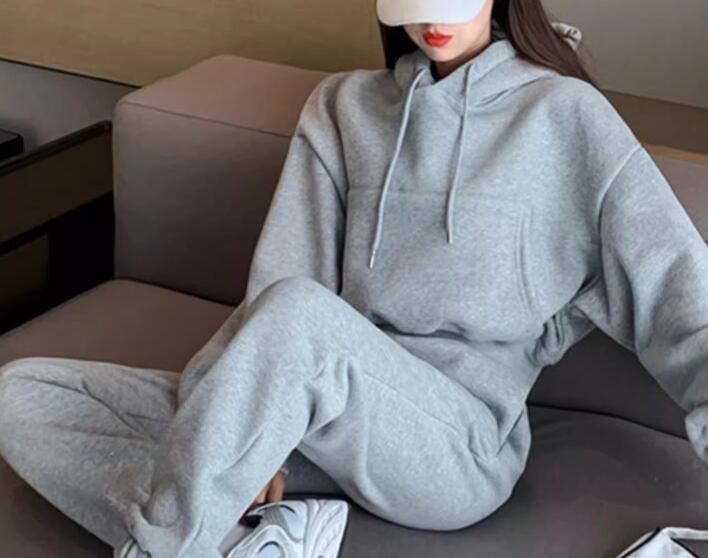 二点セット 上下セット ツーピース レディース パンツ プルオーバー パーカー スウェット 部屋着 セットアップ スポーツウェア 9分丈 アンクル丈 フルレングス 長袖 ストリート ポケット ウエストゴム 厚手 ベルベット ストレッチ 伸縮性 シンプル カジュアル おしゃれ かっこいい ラフ メンズライク ボーイッシュ スポーティー ルーズ クール 爽やか リラックス 無地 秋 冬 楽ちん 暖かい 普段使い 着回し トレンド 流行 S M L XL ゆったり ゆる 大きめ オーバーサイズ グレー ブルー