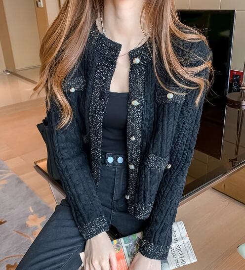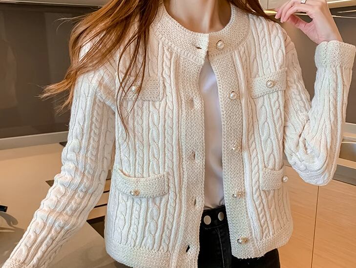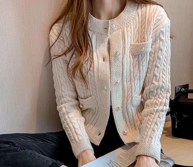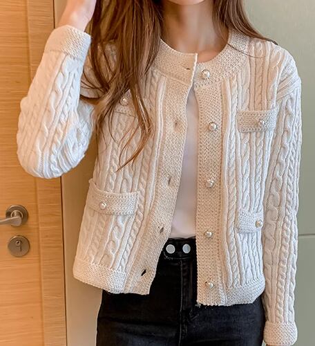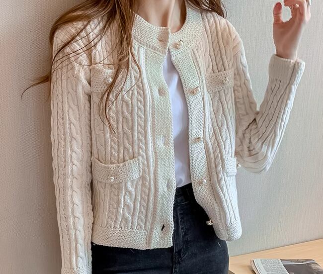 レディース トップス ニット セーター カーディガン アウター 上着 羽織 ショート 長袖 ラウンドネック ストレート ポケット 前開き ボタン パールボタン 厚手 大人可愛い きれいめ シンプル 上品 おしゃれ こなれ感 クール エレガント ナチュラル 知的 清潔感 シック 高級感 オフィスカジュアル 無地 秋 冬 OL デート お出かけ 旅行 レストラン 女子会 休日 ショッピング カフェ 普段使い 着回し 清楚 S M L XL ブラック オフホワイト ブルー 大人カラー 大人デザイン