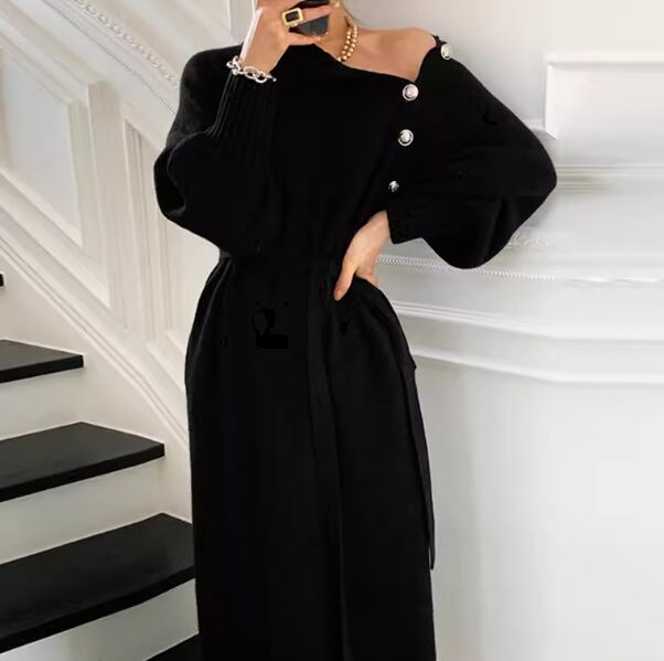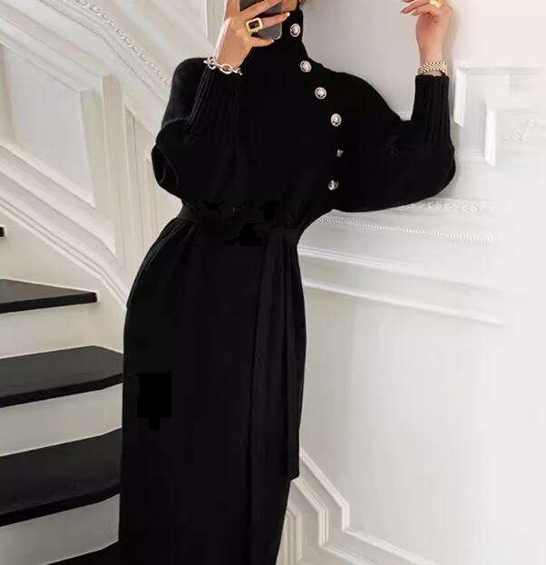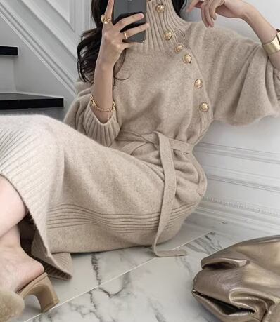 レディース ワンピース プルオーバー ドレス ニットワンピ ロング 長袖 ハイネック タートルネック スリム 細身 ベルト ウエストマーク 異国風 大人可愛い きれいめ シンプル 上品 おしゃれ かっこいい こなれ感 個性的 クール エレガント ラグジュアリー セレブリティ ハンサム シック 高級感 スタイリッシュ 無地 秋 冬 OL デート お出かけ レストラン 女子会 休日 ショッピング 普段使い モテ S M L XL 小さめ ブラック カーキ アプリコット 大人カラー 秋カラー 大人デザイン