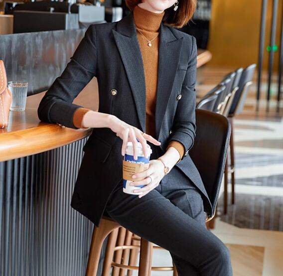 シンプルでスタイリッシュなデザインが魅力的なスーツの上下セット。