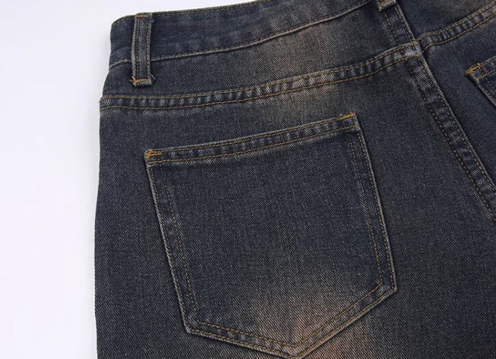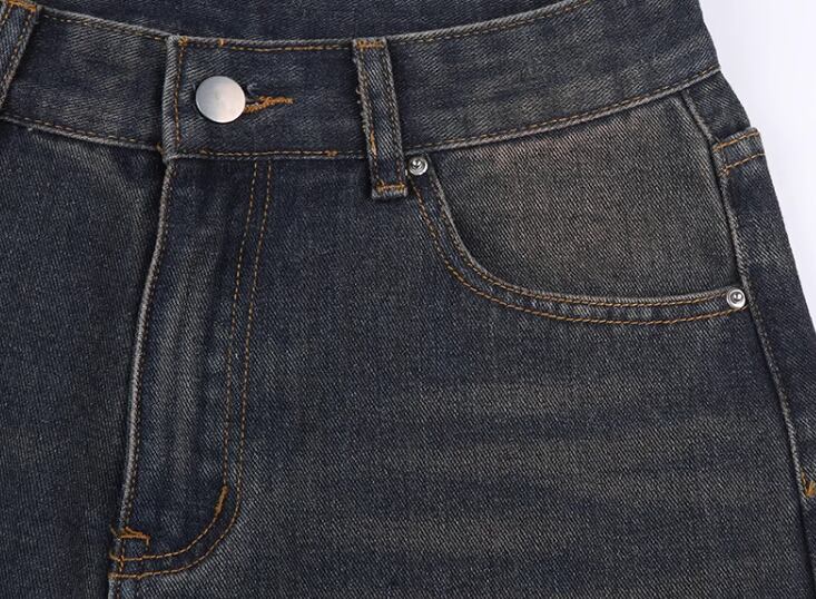 ダメージ加工×ウォッシュ加工がおしゃれなフルレングスのジーンズ。