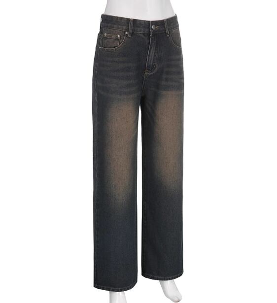 レディース パンツ ボトムス デニム ジーンズ Gパン フルレングス ワイド ストレート ストリート 異国風 アメカジ ダメージ ウォッシュ カジュアル おしゃれ かっこいい レトロ こなれ感 ラフ メンズライク ボーイッシュ ルーズ 個性的 クール 浴衣風 ラグジュアリー アメリカン ワイルド ハンサム シック 芸術的 アーティスティック 無地 春 夏 秋 冬 オールシーズン シーズンレス 10代 20代 学生 デート お出かけ 体型カバー 普段使い 着回し S M L ゆったり ゆる 大きめ ブルー