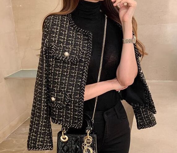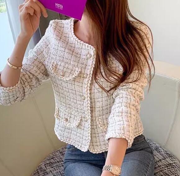 レディース ジャケット アウター 上着 ノーカラージャケット ショート 長袖 ラウンドネック ノーカラー フェミニン ボタン パールボタン 大人可愛い きれいめ 上品 おしゃれ レトロ こなれ感 クール エレガント 存在感 ラグジュアリー クラシカル 知的 清潔感 シック 高級感 華やか スタイリッシュ チェック 秋 OL デート お出かけ パーティー イベント レストラン 女子会 休日 ショッピング カフェ 韓国 普段使い 着回し フリーサイズ ホワイト ブラック 大人デザイン