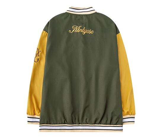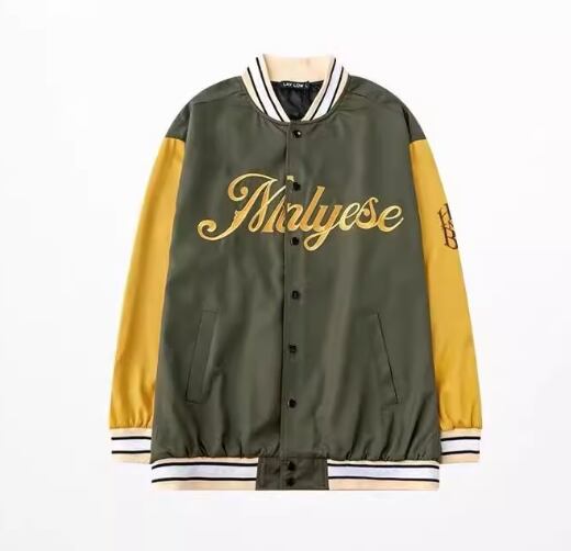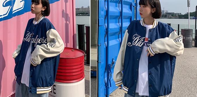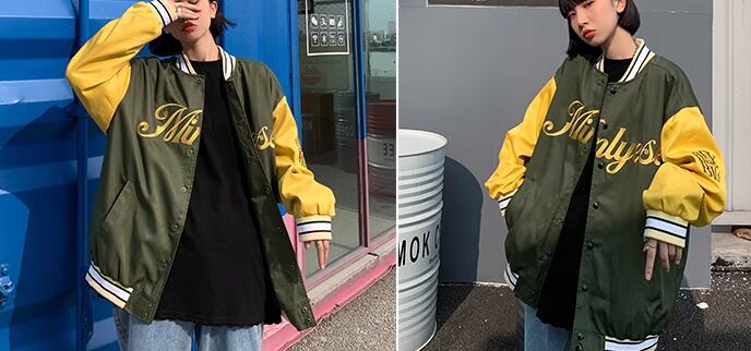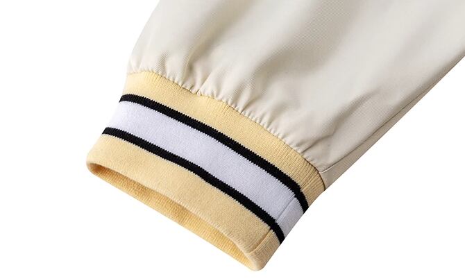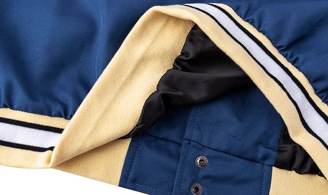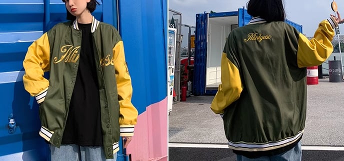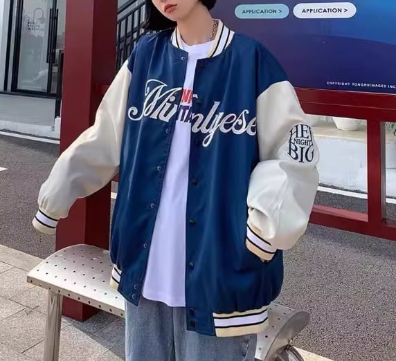 野球のユニフォーム風のデザインがおしゃれなミドル丈ジャケット。