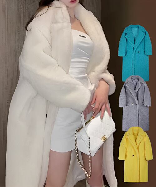 4色展開 レディース ストレートシェルパミッドレングスコート ウール 長袖 ラグラン ミッドレングス フォーマル フェイクレザー 厚手 かわいい 大人可愛い 上品 ガーリー エレガント 無地 10代 20代 通勤 お出かけ ショッピング 韓国 S M L XL ホワイト グレー イエロー ブルー