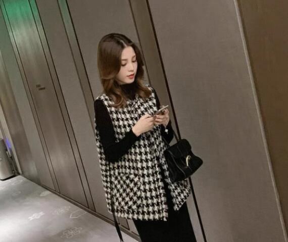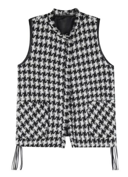 レトロでクラシカルな千鳥格子柄が大人可愛いノースリーブのミドル丈ベスト。