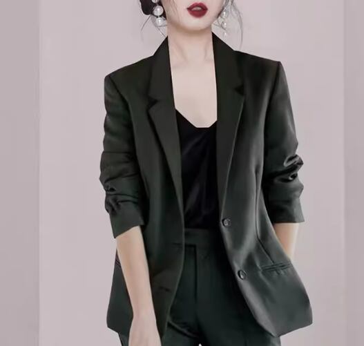 シックでクールなカーキ色が魅力的なスーツの上下セット。
