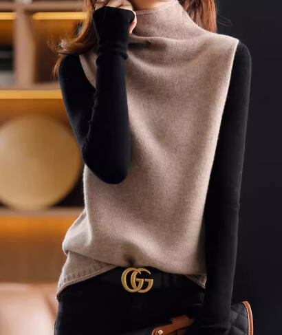 高級感のある生地と大人可愛い秋カラーが魅力的なノースリーブのニットセーター。