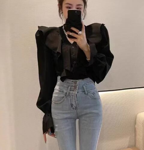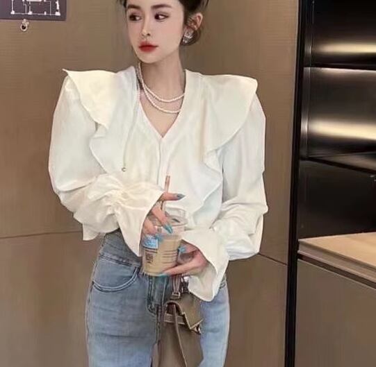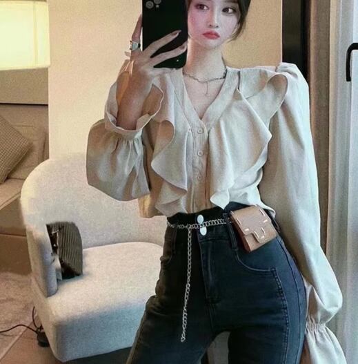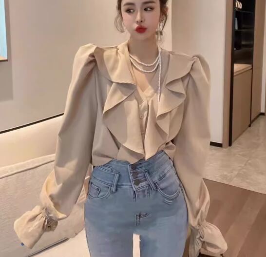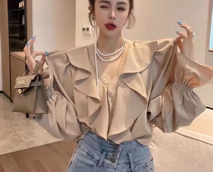 レディース トップス シャツ ショート 長袖 ボリューム袖 ランタンスリーブ Vネック フリル 異国風 ボタン かわいい 大人可愛い シンプル カジュアル 上品 おしゃれ レトロ ガーリー ルーズ 個性的 エレガント 存在感 キュート ラグジュアリー クラシカル シック 高級感 芸術的 アーティスティック 華やか スタイリッシュ 無地 春 夏 デート お出かけ 旅行 レストラン 女子会 休日 ショッピング 普段使い 着回し トレンド 流行 S M L ゆったり ゆる ホワイト ブラック カーキ