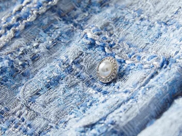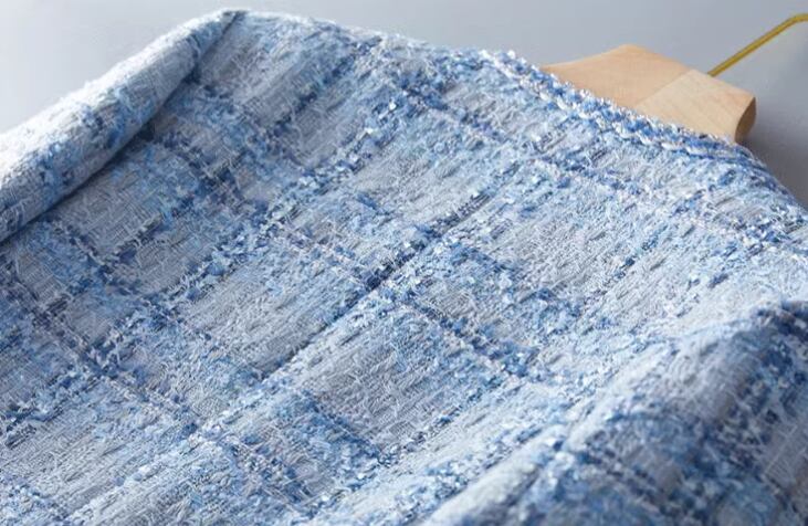 レディース ジャケット ノーカラージャケット ショート 長袖 ラウンドネック ポケット ボタン ツイード 大人可愛い きれいめ 上品 おしゃれ レトロ こなれ感 エレガント 存在感 ラグジュアリー クラシカル 知的 清潔感 爽やか シック 高級感 オフィスカジュアル 華やか スタイリッシュ 優しい チェック 秋 冬 オフィス OL 通勤 デート お出かけ 普段使い 着回し S M L XL ライトブルー 大人デザイン