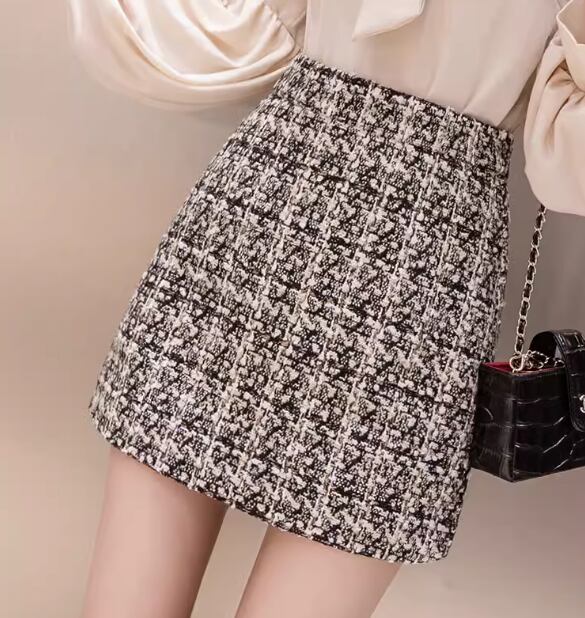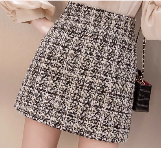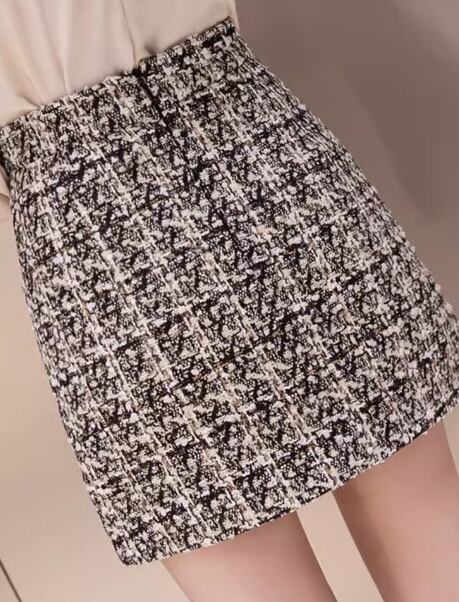 レディース スカート ボトムス ウール ショートスカート タイトスカート ミニスカート ミニ ショート タイト スリム 細身 Aライン ファスナー ハイウエスト スパンコール 大人可愛い きれいめ 上品 おしゃれ ガーリー エレガント クラシカル ナチュラル シック 高級感 スタイリッシュ チェック 秋 冬 デート お出かけ 脚長 普段使い 着回し モテ トレンド 流行 S M L XL ブラック アプリコット 秋カラー
