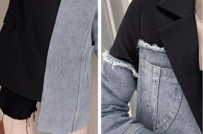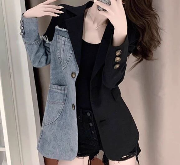 左右非対称なスタイリッシュなデザインが魅力的なデニムジャケット。