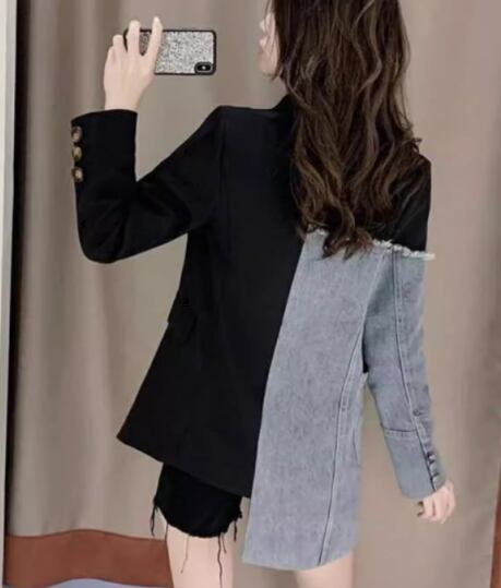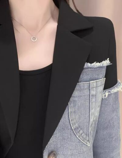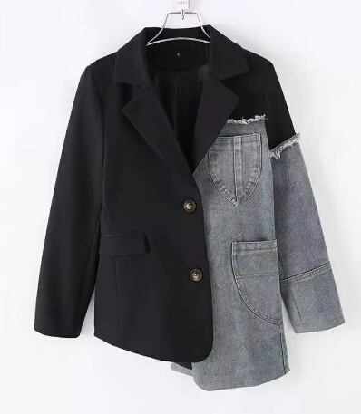 レディース ジャケット デニム デニムジャケット ミドル丈 左右非対称 長袖 襟付き スーツカラー 前開き ボタン 切り替えデザイン ステッチ かわいい 大人可愛い カジュアル おしゃれ かっこいい こなれ感 メンズライク ボーイッシュ 個性的 クール モダン 存在感 ラグジュアリー ハンサム シック 高級感 芸術的 アーティスティック スタイリッシュ 無地 秋 デート お出かけ 普段使い 着回し S M L ブラック